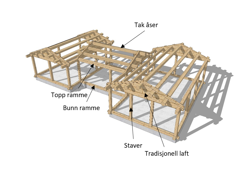 Med stavlaft kombinerer man det beste fra to byggemåter. Tradisjonell laft - og vanlig reisverk.